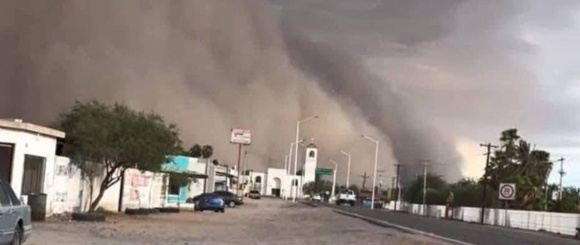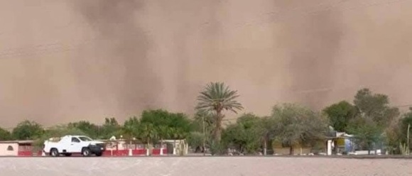 Foto: Zandstorm in Caborca, geleend van de lokale krant in Caborca, Sonora Mexico